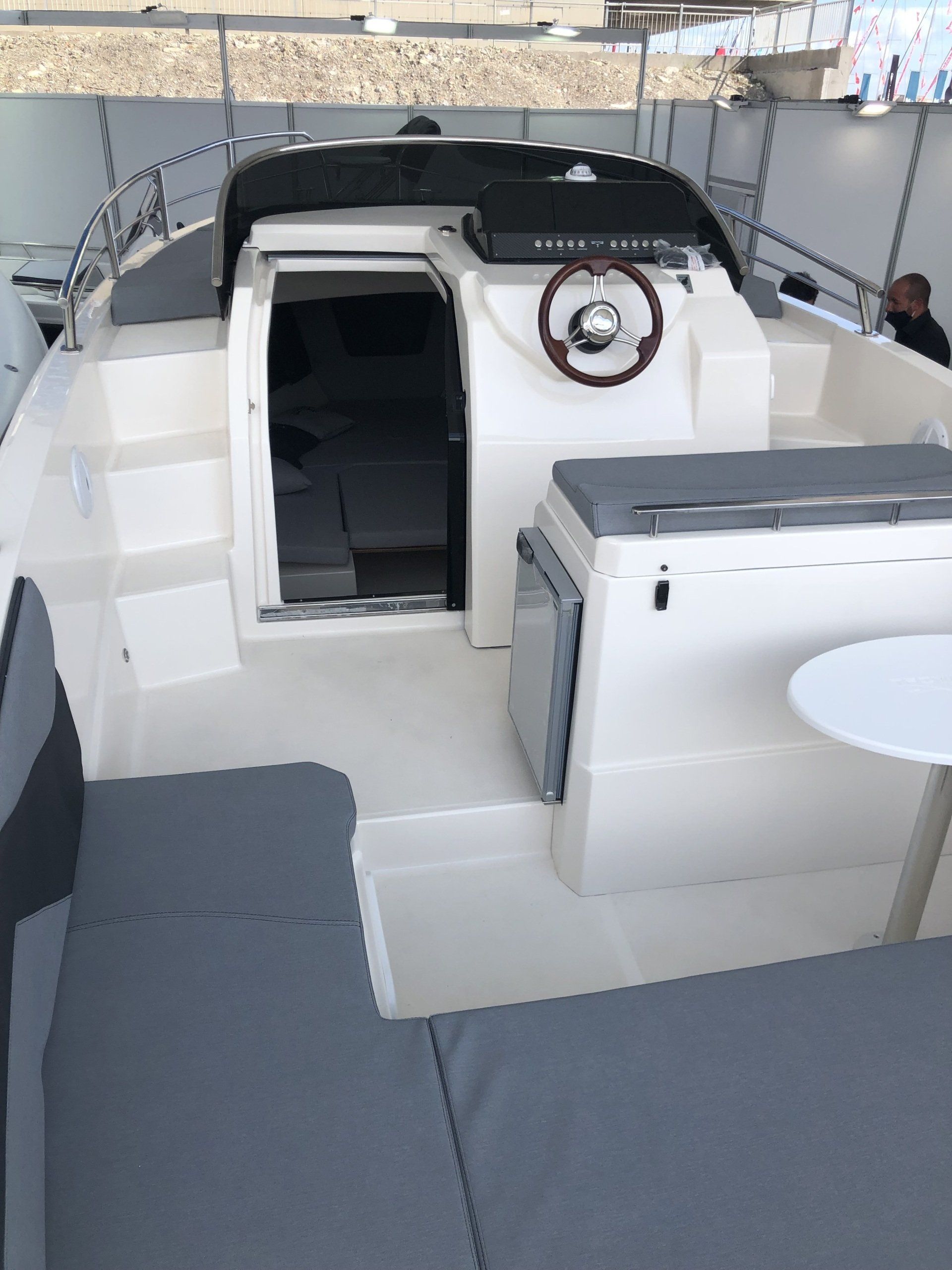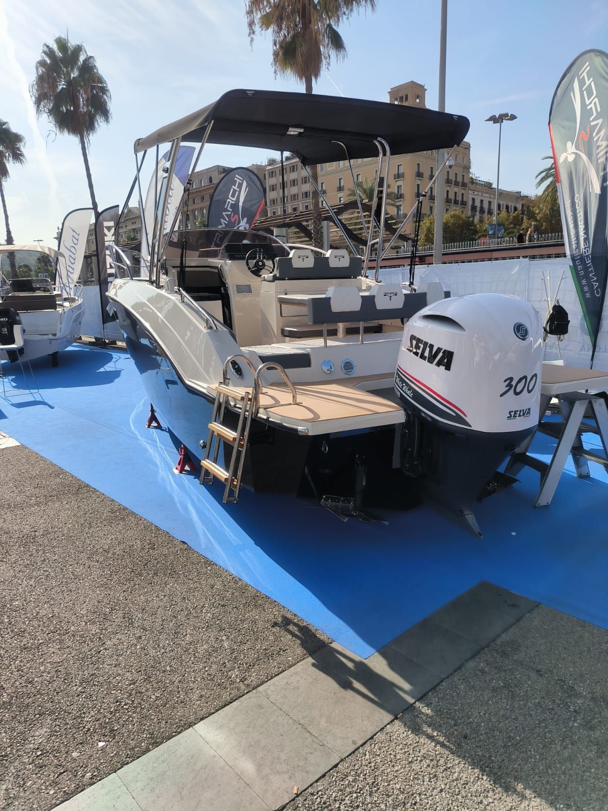 - Pre bañera de fibra integrada en la popa con plataformas laterales.